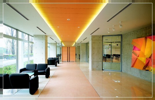 コンクリートの打ち放しの都会的な外観。内装にはレリーフが飾られ吹き抜けの広い空間があるなど至る所にアートを感じることができます。