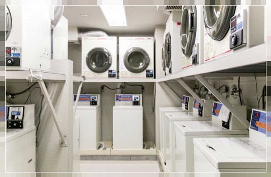 15台の洗濯機と乾燥機が設置されている地下1階のランドリー室。食後に洗濯物を取るようにすると時間が有効に使えます。 - 女性用
