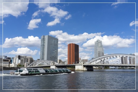 隅田川沿いには水上バスの発着所があり、東京の景観を水場から楽しむこともできます。
